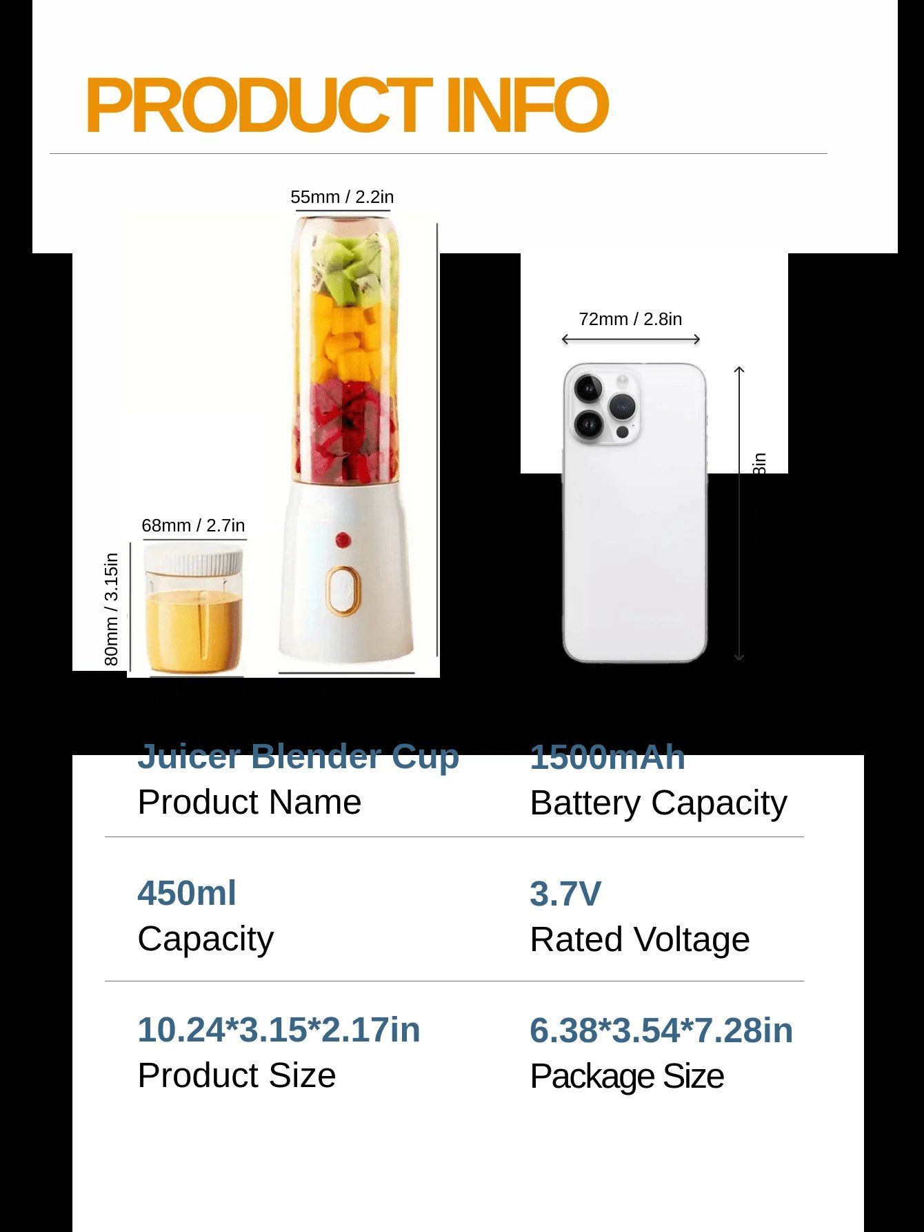 - سعة 450 مل مثالية لتحضير العصير أو الميلك شيك بكمية مناسبة لشخصين.