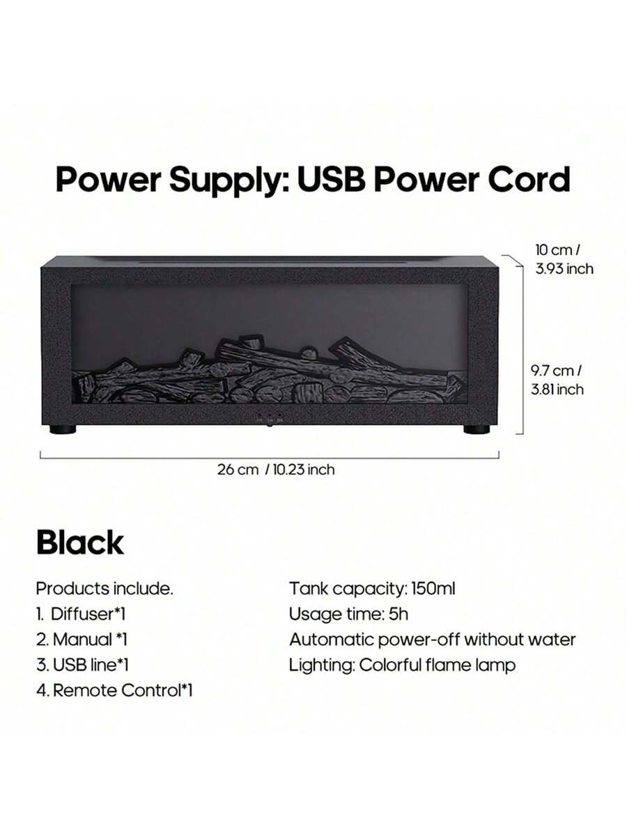 - اسم المنتج: مدفأة بخاخ رطوبة بخار بارد سعة 150مل ، موزع ضوء وشعلة ملون ب- 7 ألوان بريموت كنترول بدون ماء